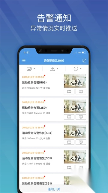 5、一旦触发告警,移动终端会收到告警提醒,此时用户能够及时查看直播、告警视频、捕获内容等,并对告警情况进行处理。