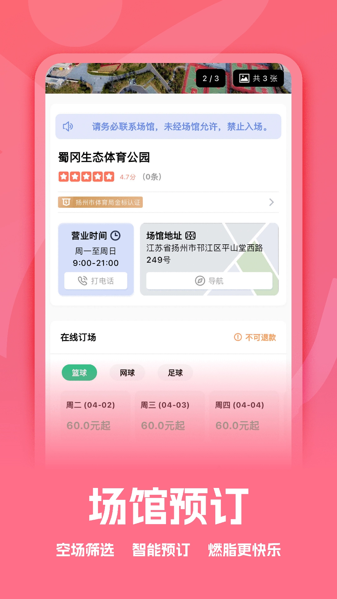 2、借助APP,用户能在线查看场馆实时状况,还可直接预订。无需进行繁琐的电话预约,简简单单就能预定场地。