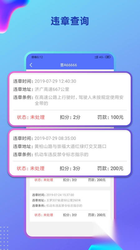 违章查询:支持查询全国大货车违章,大货车违章信息实时更新,及时、快速、准确!