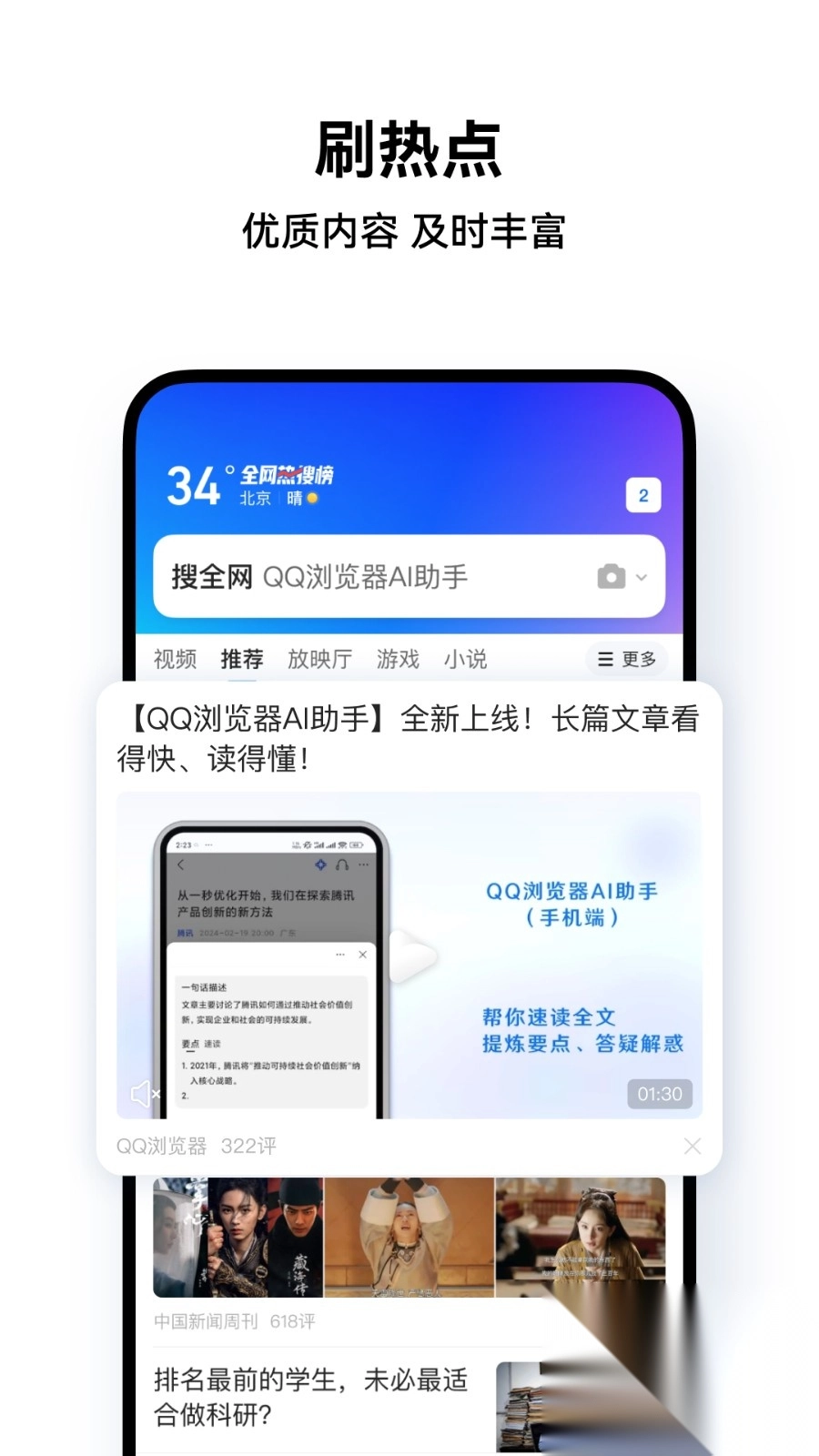 QQ浏览器全新升级!我们聚焦用户核心需求,我们优化了【视频播放】【图片查看器】功能,希望通过这些改进,能够为您带来更加流畅、便捷的使用体验,让您的生活和工作更加高效、有序。