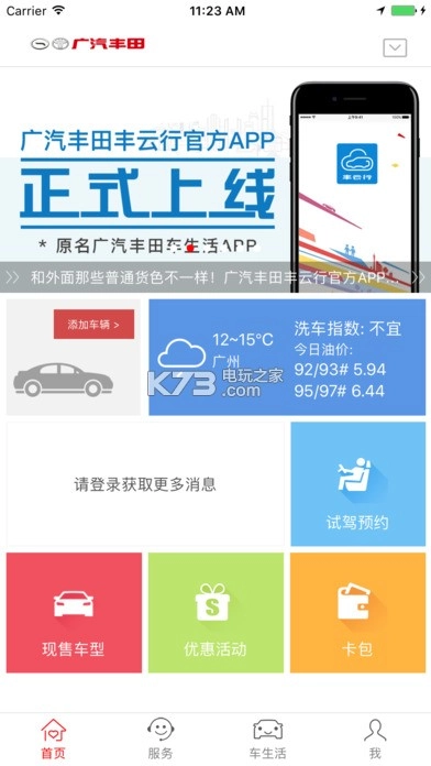 登登登,广汽丰田官方 APP——丰云行,丰起云动,与“礼”同行!新伙伴有欢迎礼,老朋友抽奖有惊喜......广汽丰田官方 APP 车生活华丽升级为丰云行,更多好礼,更贴心的服务,等你来体验。