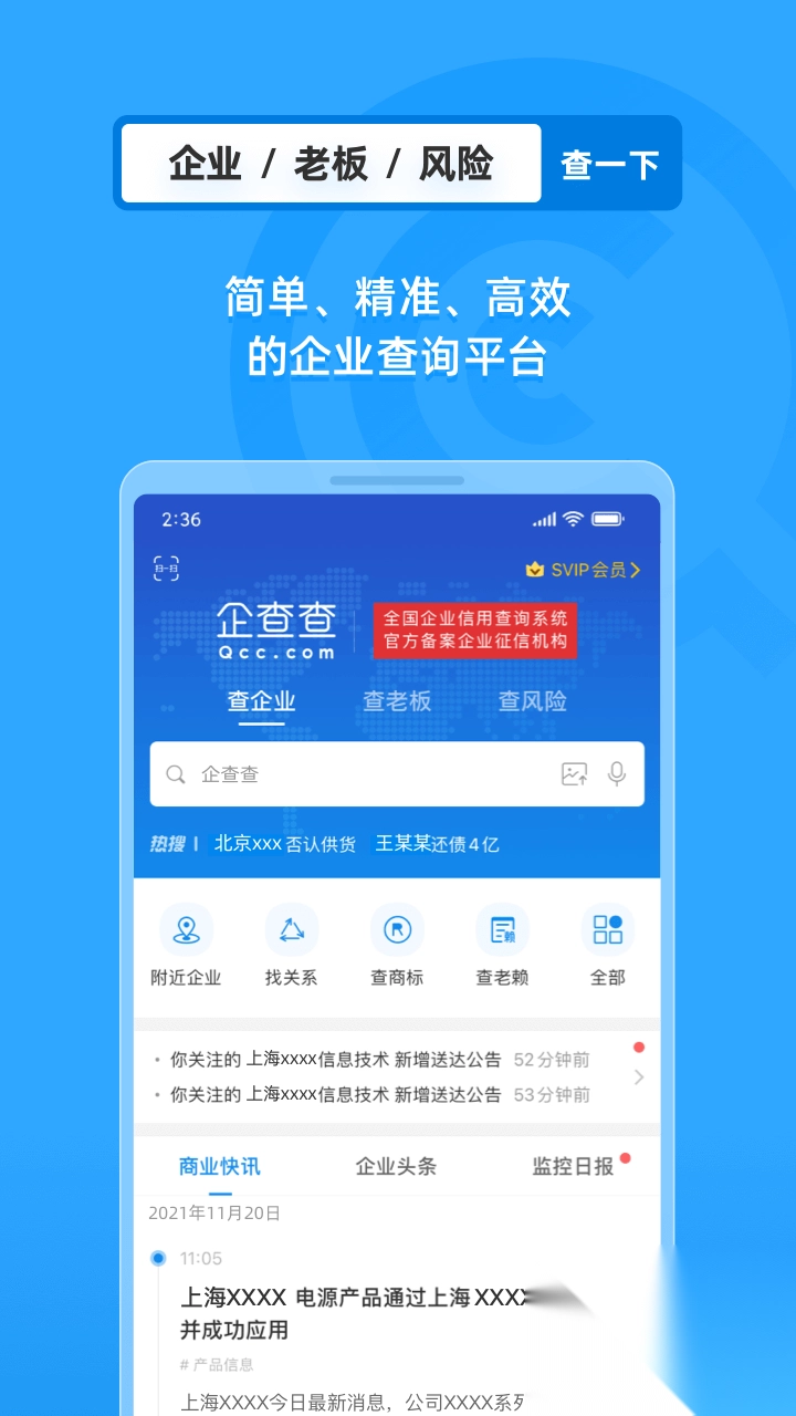 企查查是一个提供企业信用查询的应用,企查查涵盖了全国所有的企业信息,