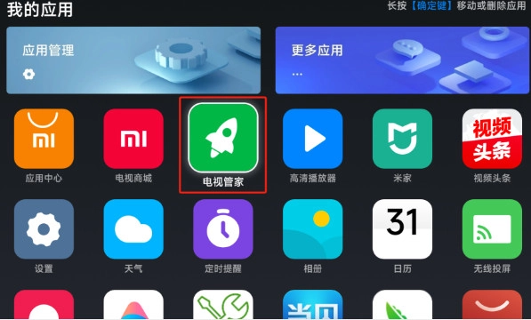 3.将U盘插到小米盒子上。选择【电视管家】。