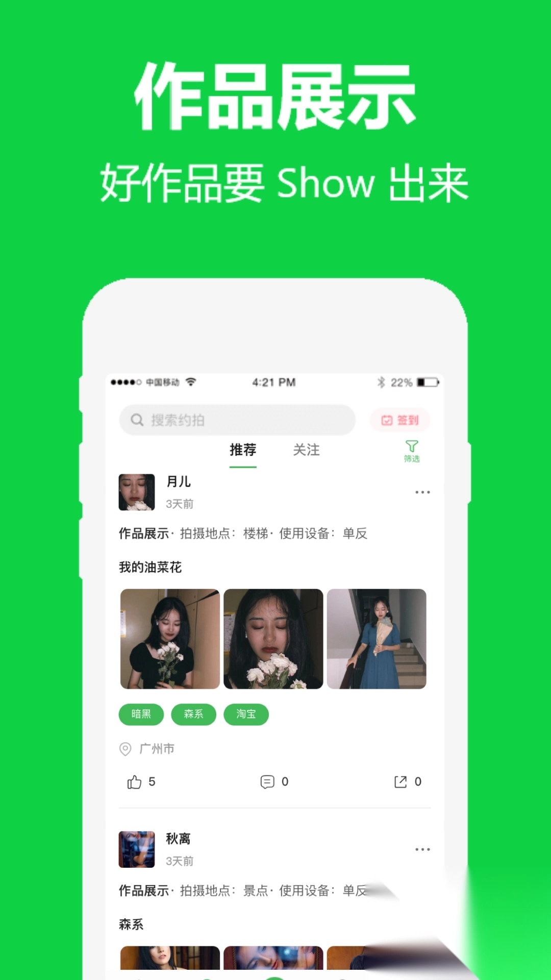 ● 模特艺人能够在线分享演艺生活动态,随时得到商家的关注与支持。