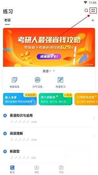 1、点击打开粉笔公考app,点击页面右上角的图标,如图所示: