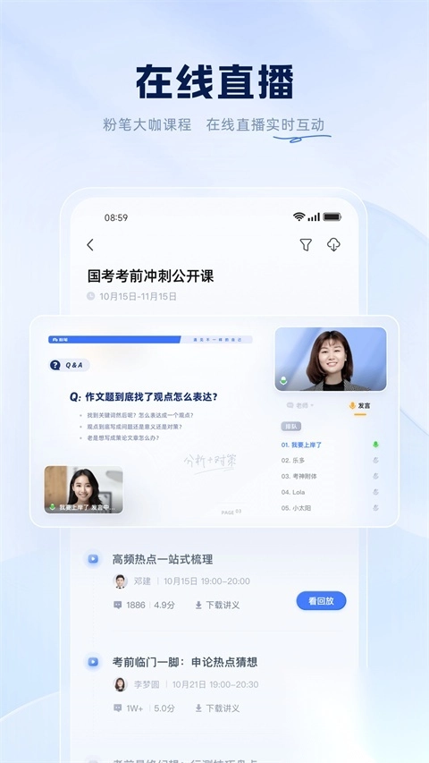 5、在线直播课:全国名师直播课程,可实时参与互动,体验真实上课场景,课程无限次回放。