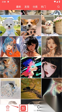 1. 在首页界面,点击底部的红色笔功能。