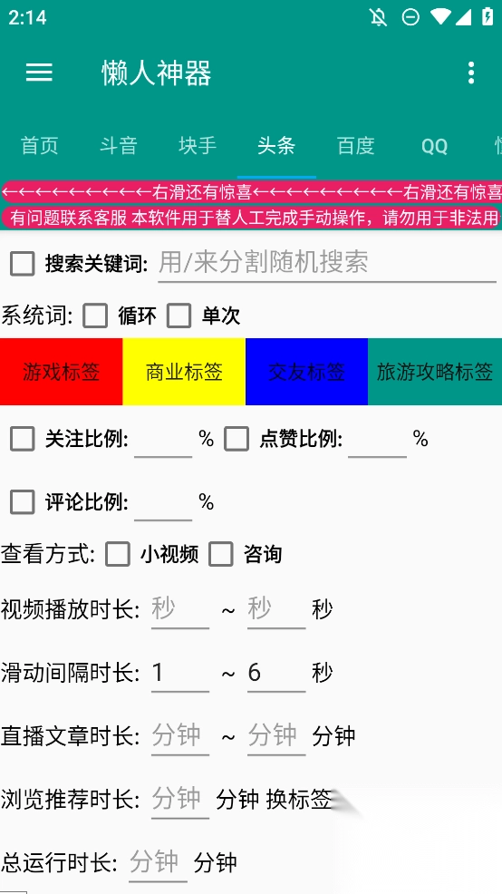 还在为养号发愁?懒人神器APP重磅来袭!这是一款完全免费且支持多平台的自动养号神器,短视频平台、电商购物平台、新闻阅读平台等各大平台统统不在话下。无论何时何地,只需在APP内一键设置,就能开启轻松养号之旅,无需时刻紧盯关注,它会自动帮你完成养号操作,真正解放你的双手,让养号变得更快速、更便捷、更高效。别再犹豫啦,有养号需求的朋友,赶紧前往腾飞网下载这款软件,体验全新养号模式!