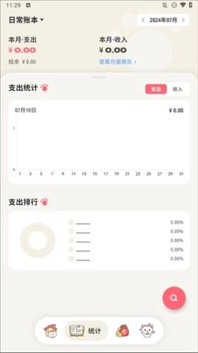 3、切换至【统计】页面,你还可查看专属的支出曲线图,借助图表助力你把握财务走向,明晰钱的去向。