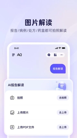 3、AQ具备拍照、照片、PDF文件等多种解读模式,这极大地简化了用户操作流程,显著提升了解读效率。