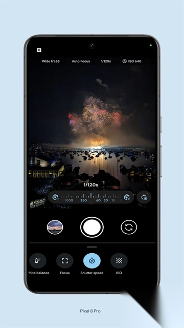 • 可使用“专业设置”功能调节快门速度、ISO 等高级相机设置(仅限 Pixel 8 Pro)