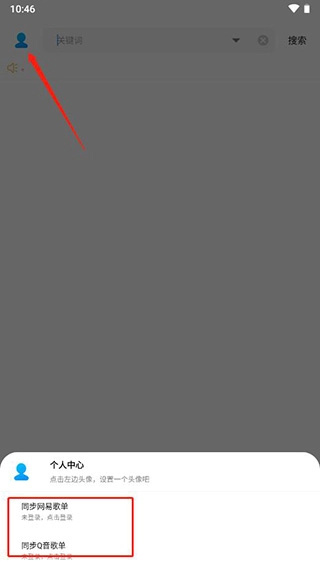 1、轻点左上角,进入个人中心,在其下方即可看到同步网易歌单与Q音歌单的选项。