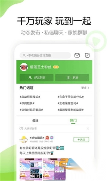 想要畅玩手机游戏?那就来4399游戏盒!它集合了游戏推荐、攻略、礼包、论坛等丰富功能。在这里,用户能免费体验游戏,还可与好友互动交流,在游戏圈讨论求助,尽情展示个人风采。只需轻松一键,即可随时随地安装。十万海量游戏均由资深玩家强力推荐,搭配精彩的游戏视频解说以及高玩的游戏攻略评测,还有人气爆棚的游戏社区,让玩家沉浸其中,百玩不腻!