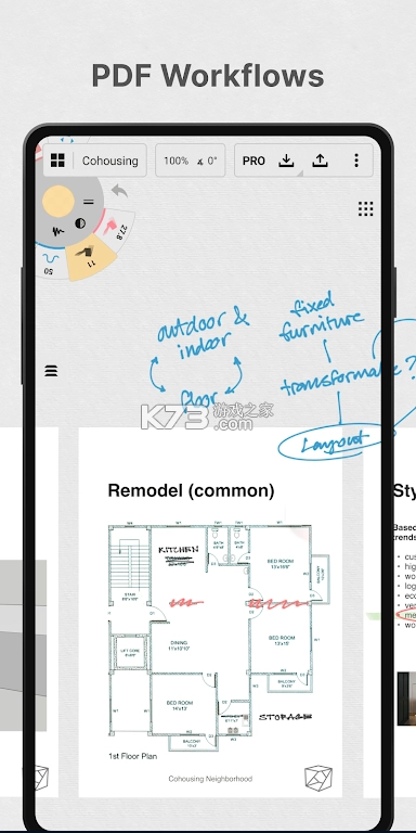 精准绘图助力:此应用整合了精细的绘图辅助工具,像多点触控形状参考线、自动测量与对齐功能,让用户在移动设备上也可如同运用CAD软件那般,对草图实现精准把控,复杂的几何计算则由应用后台处理完毕。