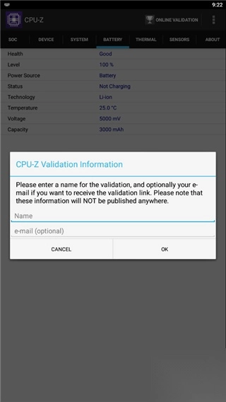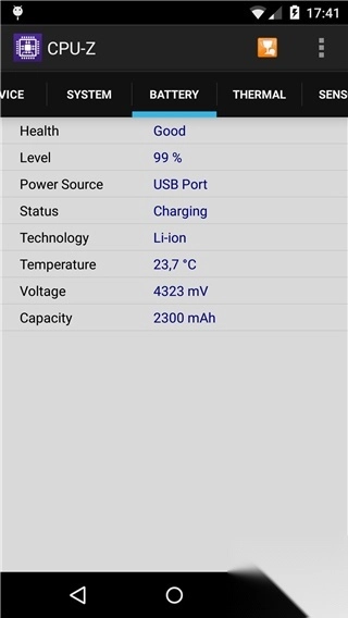 4、BATTERY可查看手机电池详细信息:电量、状态、温度、电压等。