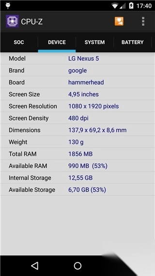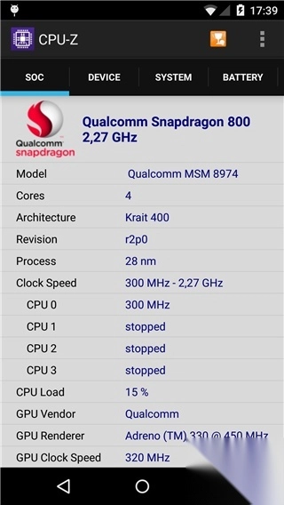 CPU-Z安卓版是一款完全免费的工具,能帮您查看设备的全部硬件信息。此应用程序会即时为您提供每个系统设备的名称、架构以及时钟(核心速度与倍频)相关信息。同样,它还会展示设备的品牌和型号、屏幕分辨率以及RAM内存等信息。此外,CPU-Z还提供电池详细情况,如电量、状态、温度、电压等。最为关键的是,与众多类似应用程序不同,CPU-Z无需任何特殊权限就能访问并显示这些信息。CPU-Z原本是一款出色的Windows硬件信息工具,如今在Android系统上也能使用。CPU-Z手机版中还涵盖SelfSnoop、CMOVccInstruction这类只有专家才看得懂的资讯与数据,助您更深入了解自己的手机和CPU。