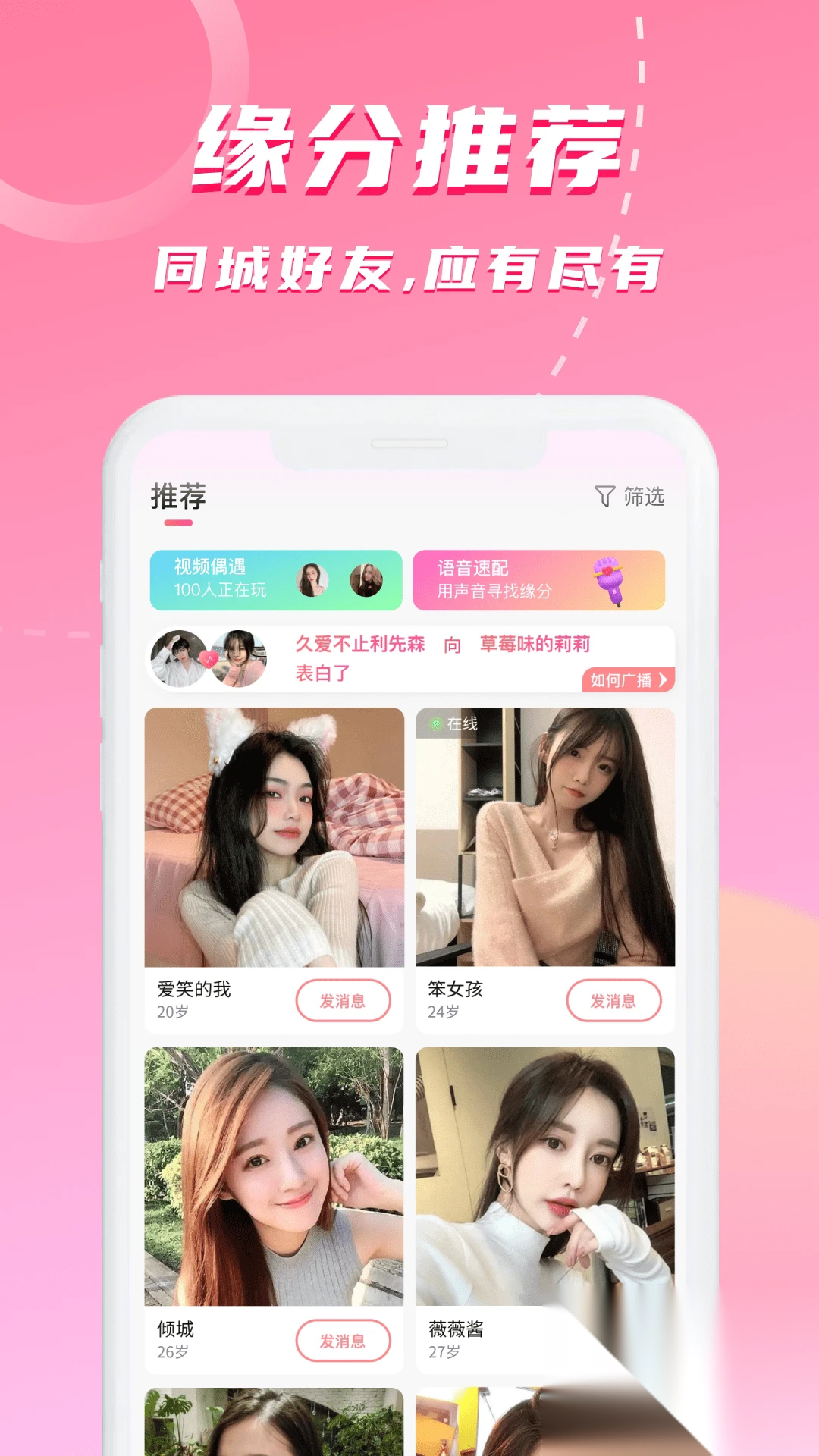 无需添加好友,即可在线约会、交友、寻觅对象,超方便畅聊!