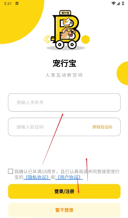 1、打开宠行宝APP,进入首页后,在顶部导航栏找到“领养”入口并点击。