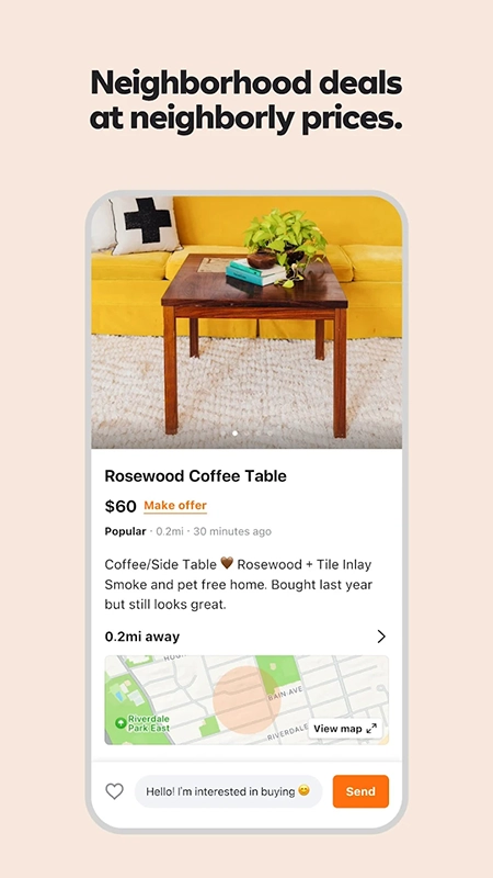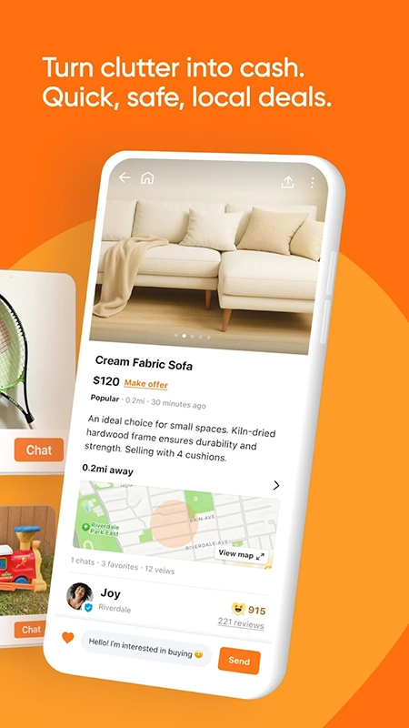 3、浏览及购买/求赠:于首页浏览周边物品,也能借助搜索功能找寻目标商品。当看到中意的物品时,可利用“Chat”功能与卖家交流,亦或点击“MakeOffer”提出价格。