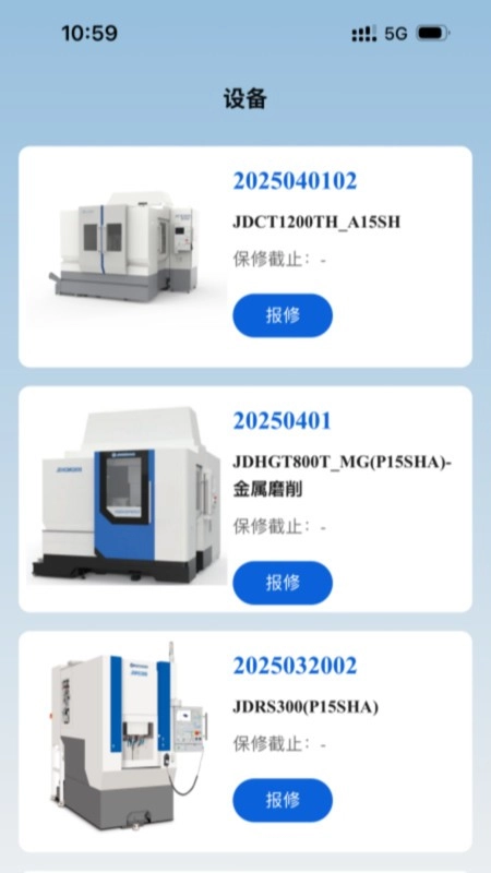 设备页面主要呈现精雕客户方已购置的精雕产品,用户能够实时查看自身设备信息以及参数信息。