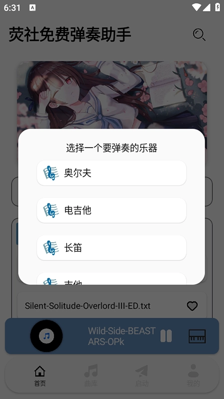 2、进入乐器选择界面,挑选想要演奏的乐器类型,确认后重启app使设置生效。