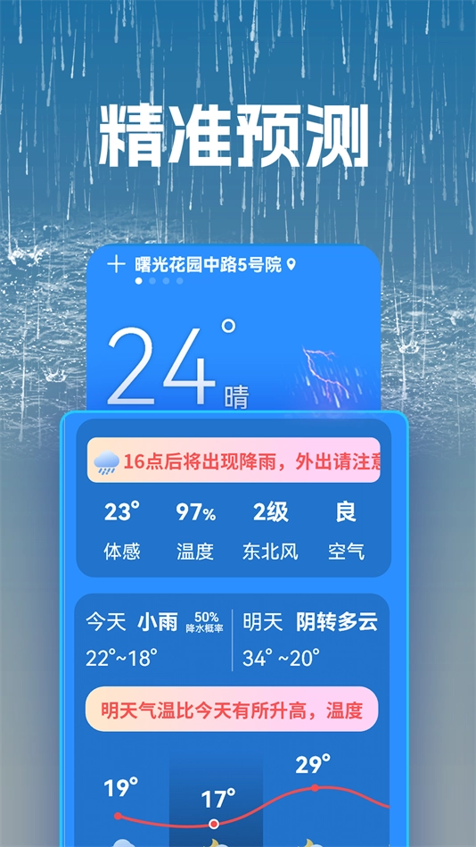 2、不管是当下的天气情况,亦或是未来几日的天气预报,用户皆可获取到最新且最精准的数据。