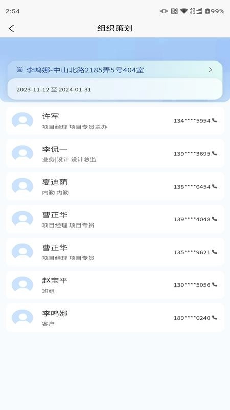 2、用户可以对项目客户进行管理,实时查看客户列表。