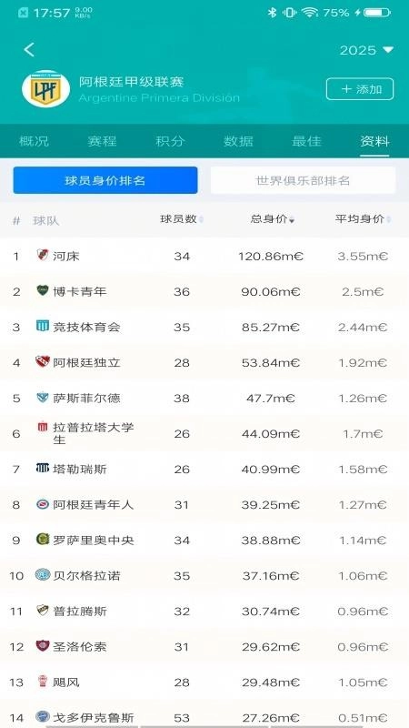 详细的联赛信息,在应用中可全方面了解联赛概况,知道各个球员的信息;