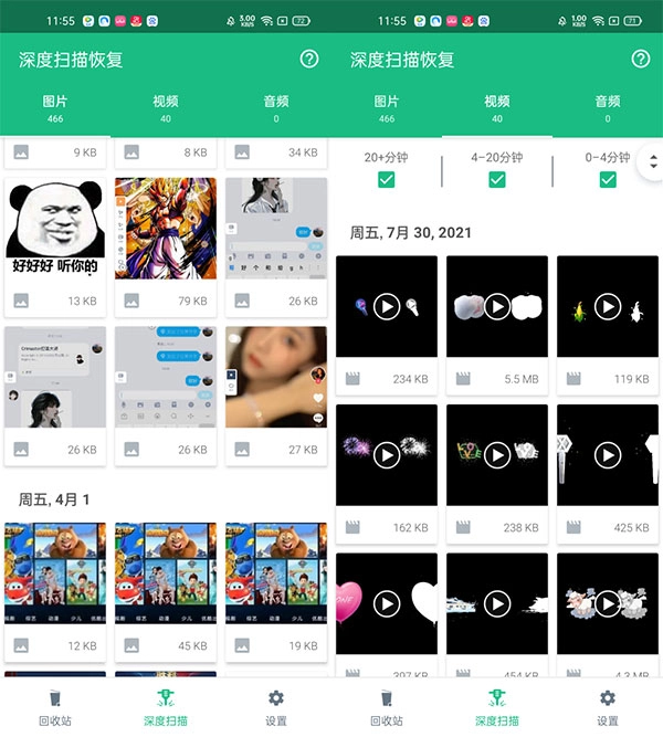 4、经扫描恢复后的文件,照片能直接在手机相册中查看,MP4格式的视频可直接恢复至本地相册进行播放。回收站Dumpster相较于一般的数据恢复工具,新增了一项功能,即额外提供了第三方回收站功能。开启该回收站功能后,软件能够保存已删除的图片、视频、音频及文件等。