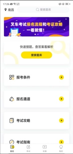 6、点击下方的【报名】按钮,便能预先查看报考条件、报名通道、考试攻略以及考试指南。