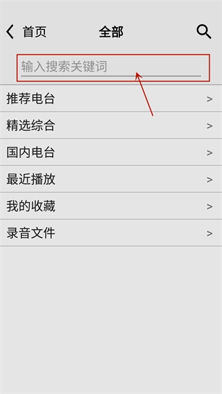 2、还可以自行搜索各种不同的电台,只需在搜索栏输入关键字即可。
