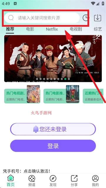 在本站下载拾光视频APP,下载完成后打开该APP,点击页面上的指定位置,搜索你想看的影片。
