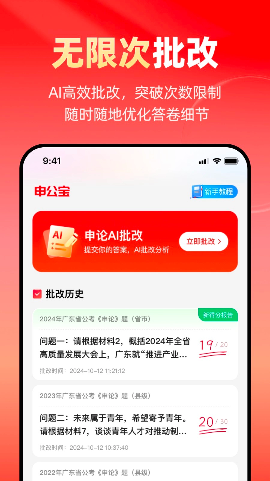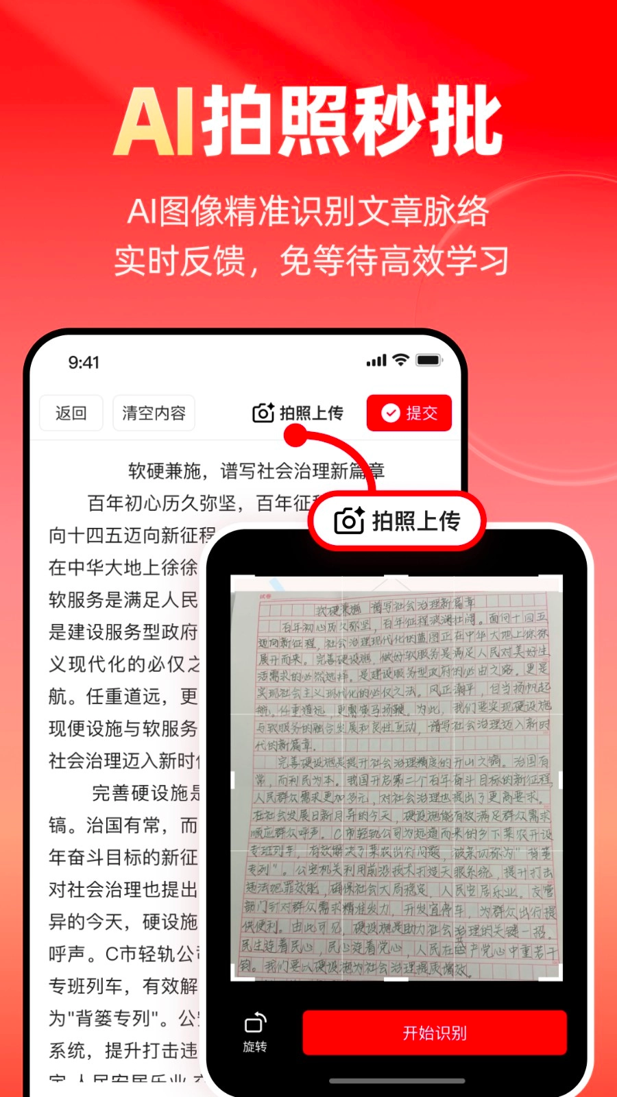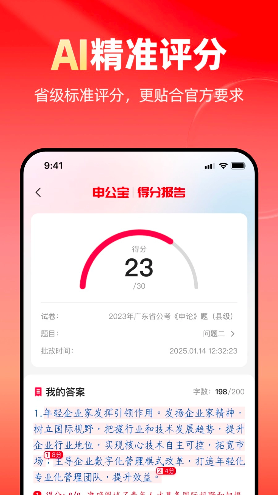 申公宝App,一款专注于公文写作批改的软件。它不仅拥有海量真题题库,还具备拍照搜题功能。无论何时何地,都能借助AI进行多维评分,帮你精准找到自身薄弱环节。AI考官会为你诊断并生成得分报告,同时给出针对性的提升建议。有需求的用户,欢迎下载体验。
