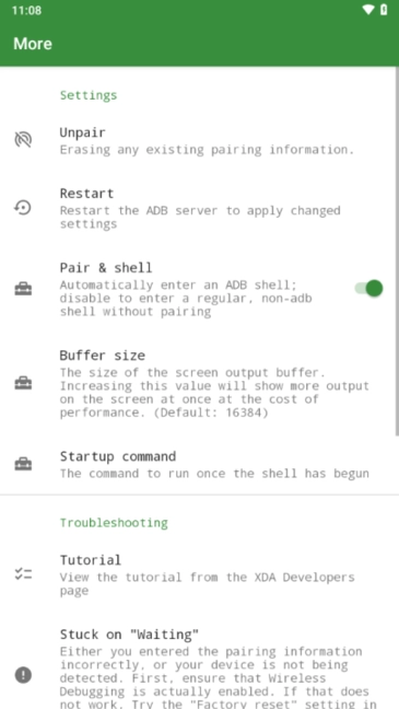5、本地ADB连接:无需借助USB连接电脑,在手机上直接建立本地ADB连接,即可实现对设备的调试与管理。