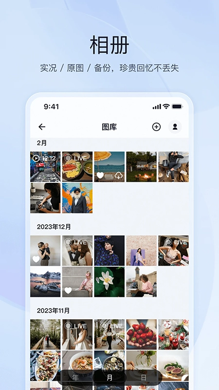 4、相册管理具备以下功能:其一,支持照片实时备份,从而有效释放手机空间;其二,支持原图、RAW格式以及实况预览;其三,能够与家人朋友共享相册,助力珍藏美好回忆。