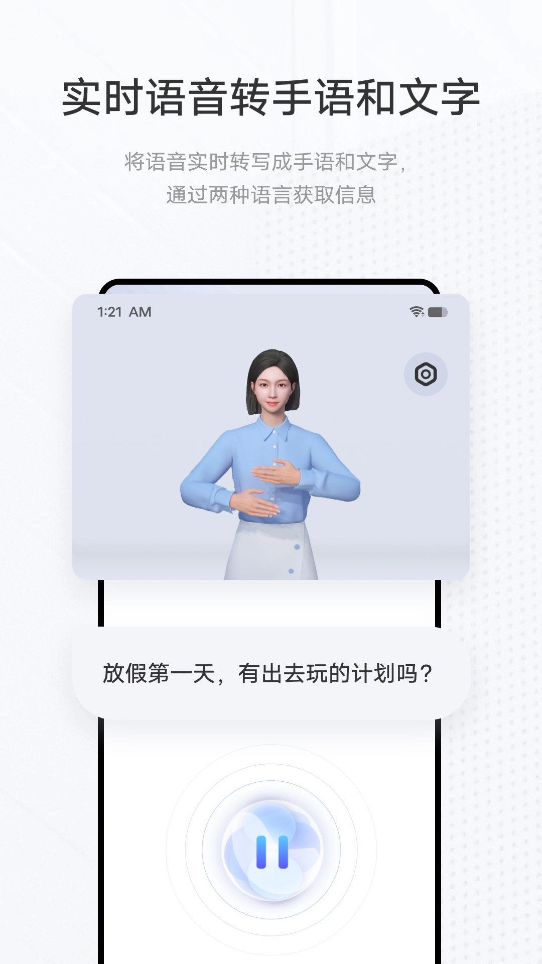 2、实时把语音转化为手语与文字,借助这两种语言获取信息,使沟通毫无压力。