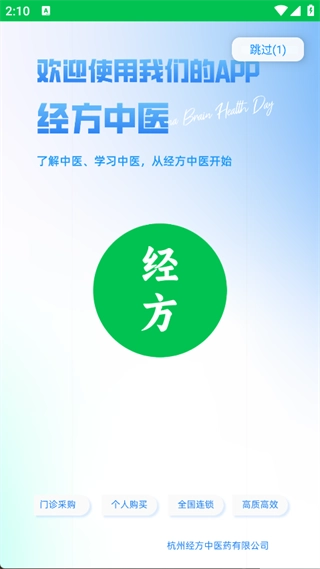 1. 下载并安装APP,点击右上角的‘跳过’,即可进入下一页面;