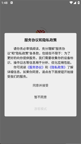 1. 下载并安装APP,点击‘同意并接受’,即可进入主页面;