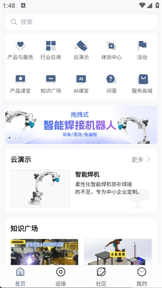 2. 在首页即可看到多个实用功能,如产品与服务、行业应用、云演示等;