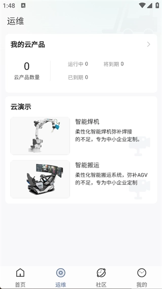 3. 点击‘运维’,即可看到我的云产品和云演示;