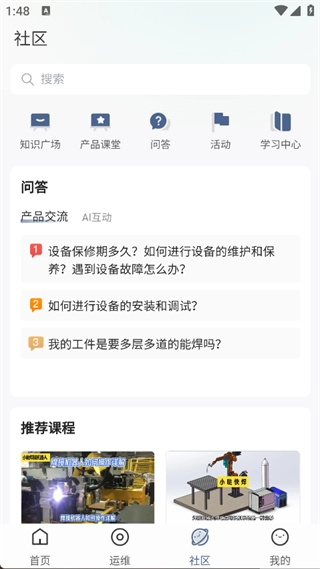 4. 点击‘社区’,即可看到各类知识科普,和推荐课程,可以按需选择。