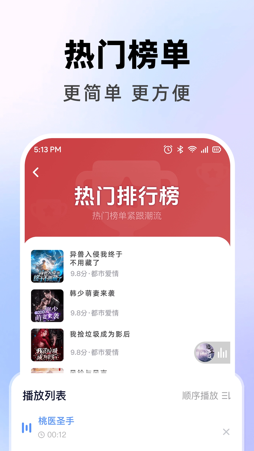 热门排行榜实时更新,展示最新潮流的有声内容,确保用户始终紧跟流行趋势,不脱节。