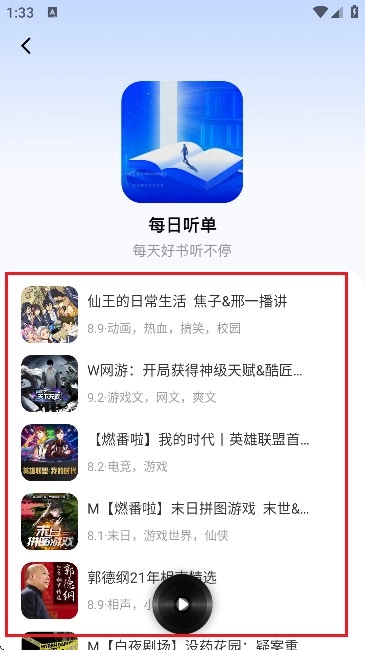 4、点击每日听单,如图片所示,这里有大量有声书源推荐,大家可随意挑选一种点击,进入收听界面。