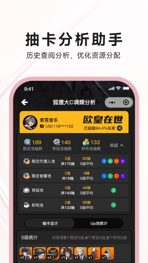还会给玩家提供抽卡分析税局,这样就可以让你学会合理的资源分配了;