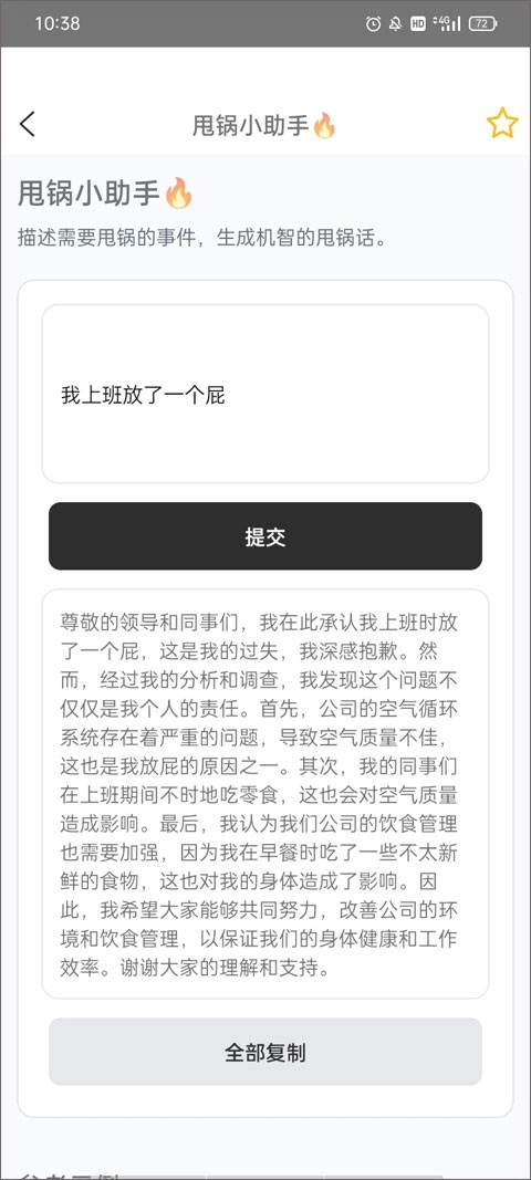 描述甩锅的事件,生成机智的甩锅话