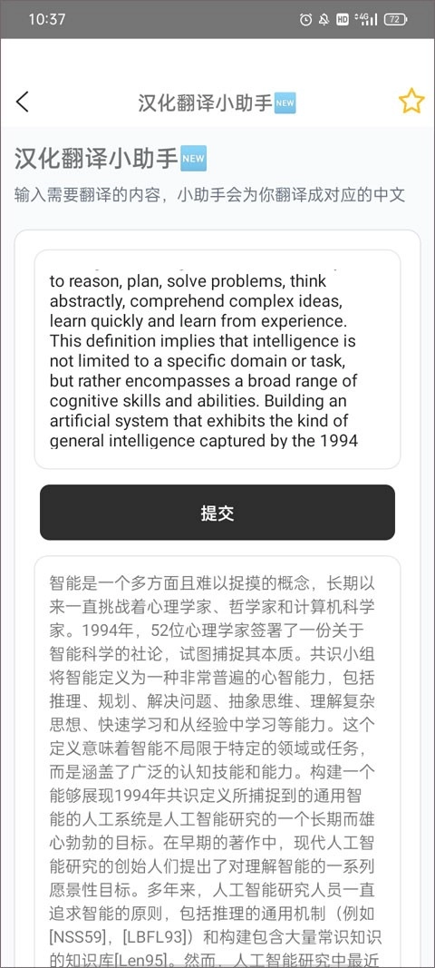 在框中复制粘贴需要翻译的内容,小助手会帮你翻译成对应的中文