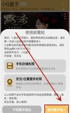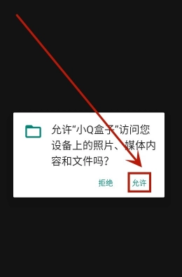 1. 首先下载小q盒子app,完成后进行安装,接着打开该app。打开后,点击【允许】选项,以此给予软件所需权限。