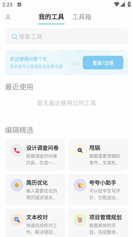 在首页或“我的工具”“搜索工具”等板块中,找到需要使用的功能。