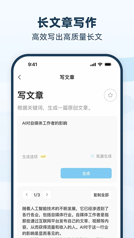 1、借助AI实现内容的自动生成与优化,助力用户在撰写周报、方案、文案等工作时,有效节省时间与精力,大幅提升办公及创作效率。