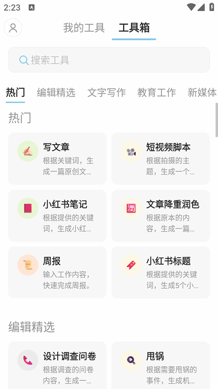 AI帮个忙作为一款AI工具类软件,其的AI功能十分丰富,涵盖编辑精选、文字写作、教育工作等多个方面。这款软件适用于工作、生活、创作等诸多场景,能够为不同行业、不同岗位的用户提供切实有用的帮助。